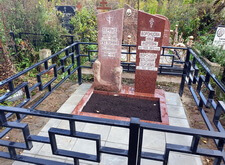 Клиент пожелал сохранить старое надгробье, а потому его мы попросту переустановили, параллельно с этим установив по периметру участка простую металлическую оградку. Все работы велись строго по уровню, а потому перекосы ограждения или надгробья абсолютно исключены.