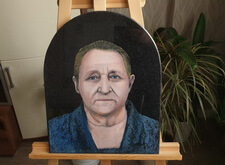Первый этап работы – компьютерная обработка. Мы заменили одежду усопшей; удалили с головы платок, открыв полностью голову покойной; а также провели детальную доработку её лица: удалили большое количество морщин, сохранив черты.