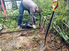 Первым делом мы принялись за уборку: убрали с территории места захоронения абсолютно всё, включая выложенную заказчиком плитку, памятники, а также сорную траву.