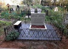 Следующим этапом в работе с могилой стала установка нового памятника, выполненного из светлого гранита и рассчитанного на двух покойных. Плиту доставили на кладбище практически сразу после изготовления, так что надпись пришлось делать уже по месту. Впрочем, на качестве работы это не коим образом не отразилось.
