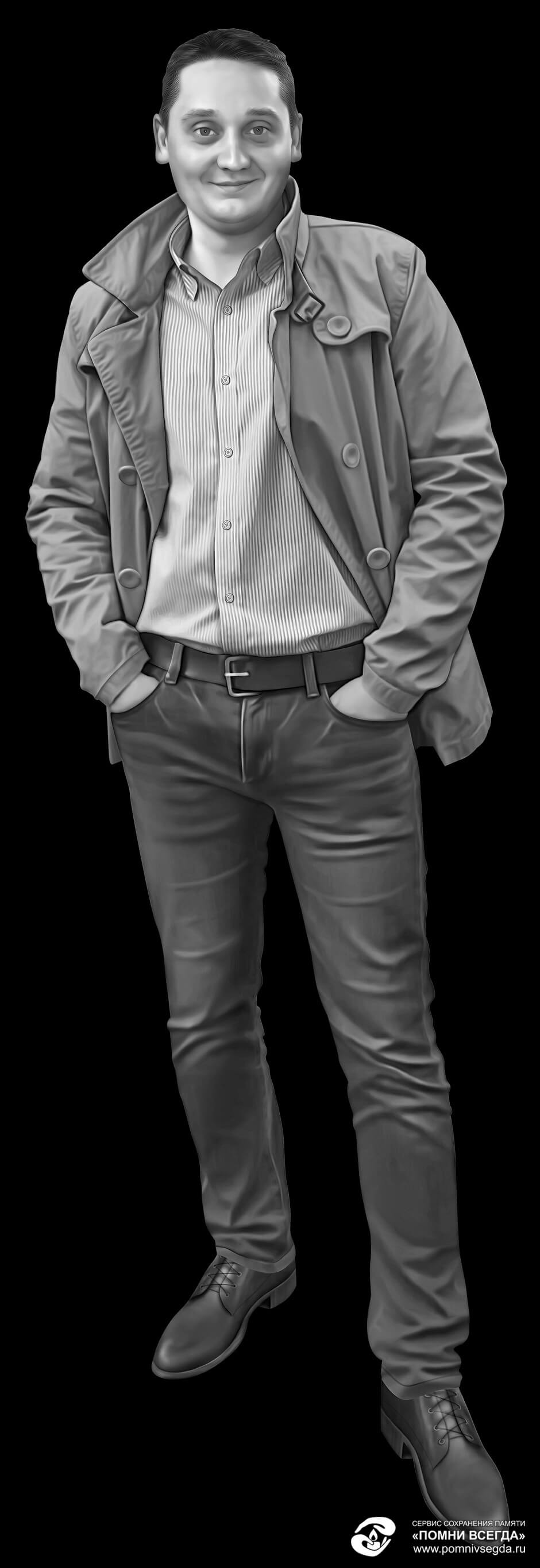 С первого фото мы взяли положение человека, а со второго – выражение лица. Совместив всё это мы получили качественно сделанный макет, пригодный как для гравировки станком, так и для ручного нанесения на гранит.