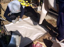 После того, как памятник был отодвинут, начинаем выравнивать его площадку. Досыпаем землю.