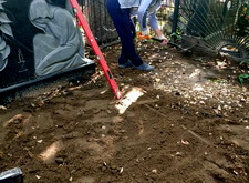 Затем мы демонтировали цветник и подрезали ему балку. В дальнейшем он изменит форму и будет занимать значительно меньше места, хотя площадь клумбы и останется прежней.