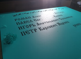 В день монтажа мы доставили готовые таблички в храм, предварительно сняв со стены висевшую там мраморную доску.
