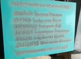 К нам с нестандартным заказом обратился настоятель одного из храмов – им требовалось изготовить новые таблички памяти погибшим военнослужащим. Приехав на место, мы первым делом принялись за осмотр фронта работ. На фотографии ниже видна церковь, в которой нам и надлежало заменить памятные надписи.