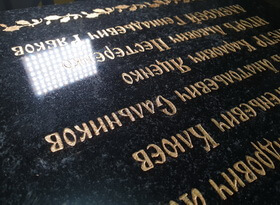 Далее снова повторяется процедура зачистки, на фотографии ниже показан конечный результат – готовая табличка, на которой нет ни следа лишнего. Каждая буковка аккуратно обработана и зачищена, на полированной поверхности гранита нет ни царапинки.
