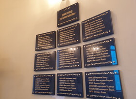 На фотографиях ниже отображено состоянии стены памяти после завершения всех работ. Таблички висят в определённом порядке, надписи легко читаются даже при небольшом освещении, а общая цветовая гамма удачно вписывается в церковный интерьер.