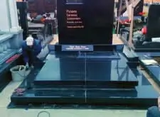 Подобрали нужный материал-чёрный Мурманский гранит. Выполнили каменотесные работы и отполировали камень до блеска.